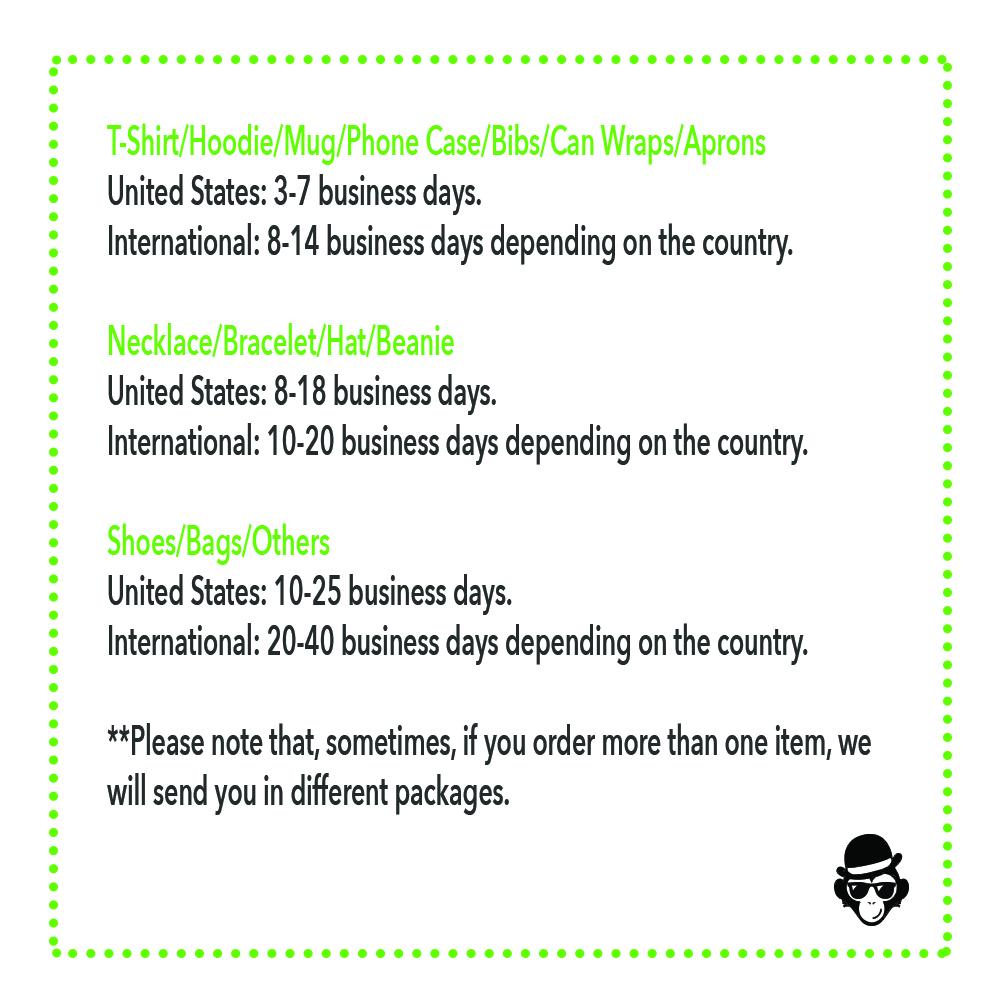 • Est. Delivery Time: USA 10-25 Business Days; Worldwide 20-40 Business Days depending on the country. (With destination tracking)